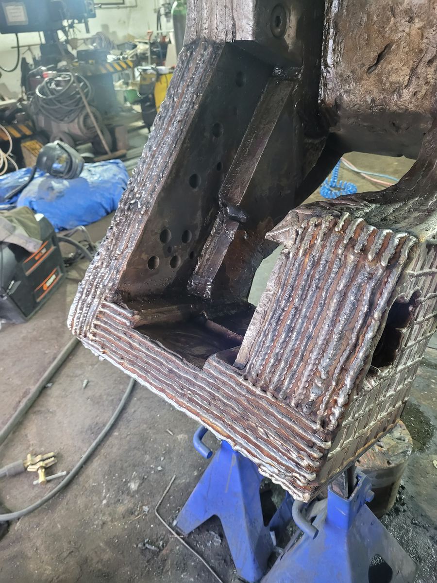 Najczęściej występującą usterką na tego typu konstrukcjach są zmęczeniowe pęknięcia ramienia koparki na skutek obciążeń konstrukcji. Powstające najczęściej na skutek złego wytworzenia spoin. Drugi typ napraw to napawanie ubytków materiału rodzimego. Pęknięcia na ramionach koparki mogą być wywołane wskutek przeciążeń ramion koparki, długim cyklem użytkowania w ciężkich warunkach. Niejednokrotnie takie pęknięcie jest wywołane błędnym procesem wytworzenia, gdyż pęka strefa wpływu ciepła czyli mamy tu do czynienia z pęknięciem lamelarnym wzdłuż krawędzi spoiny.